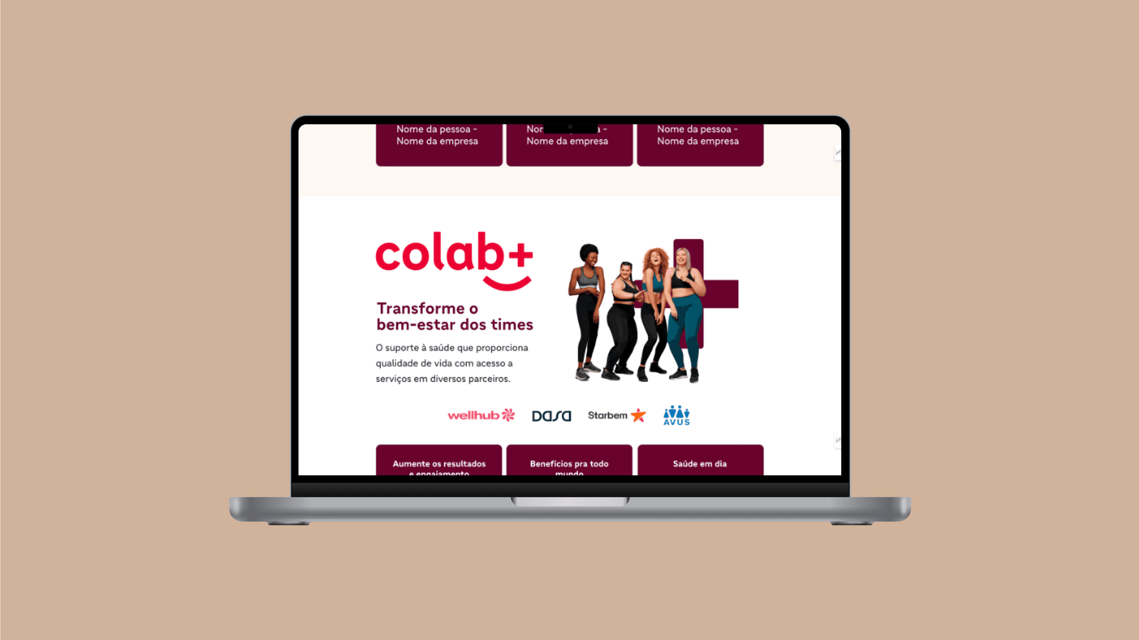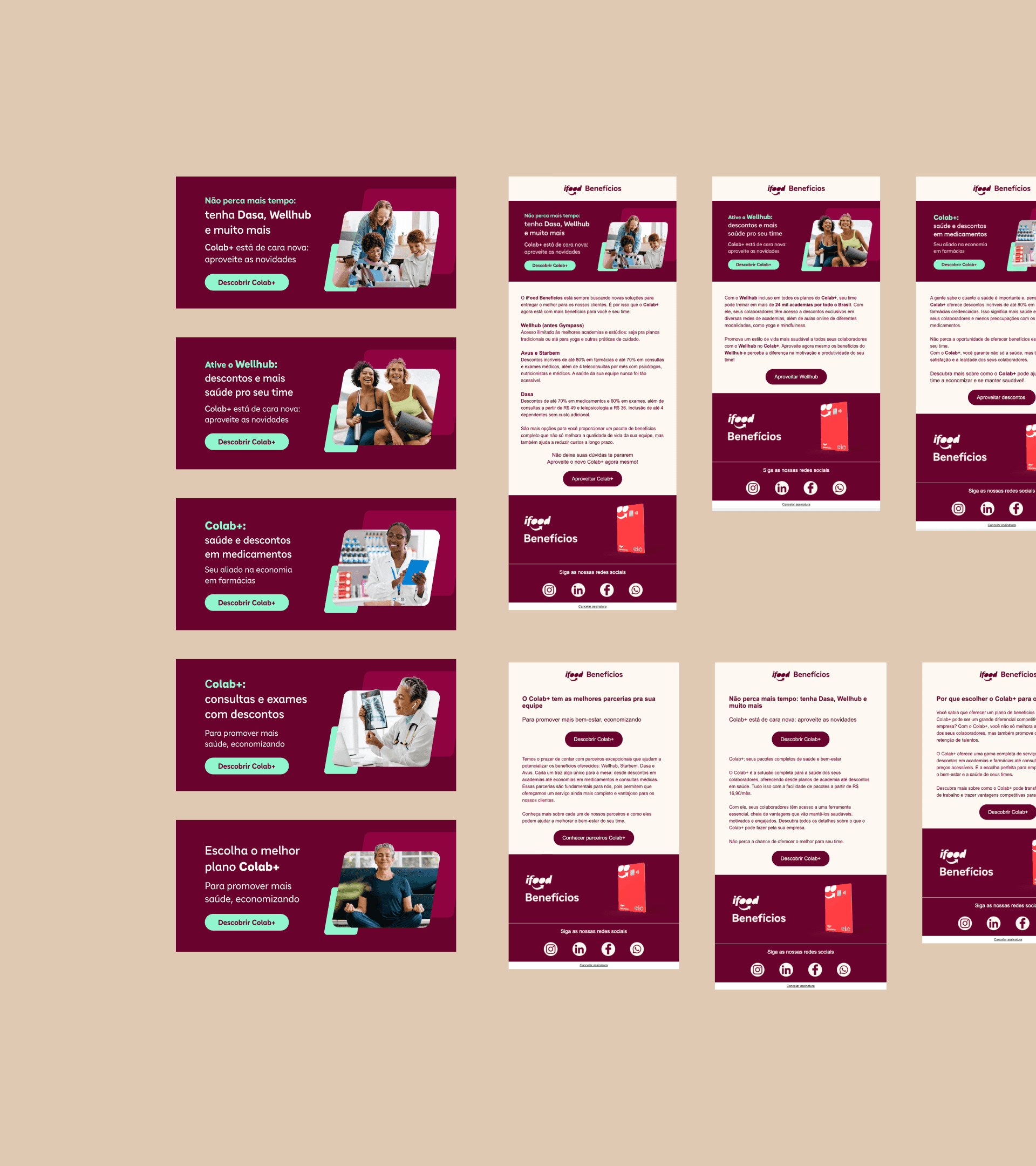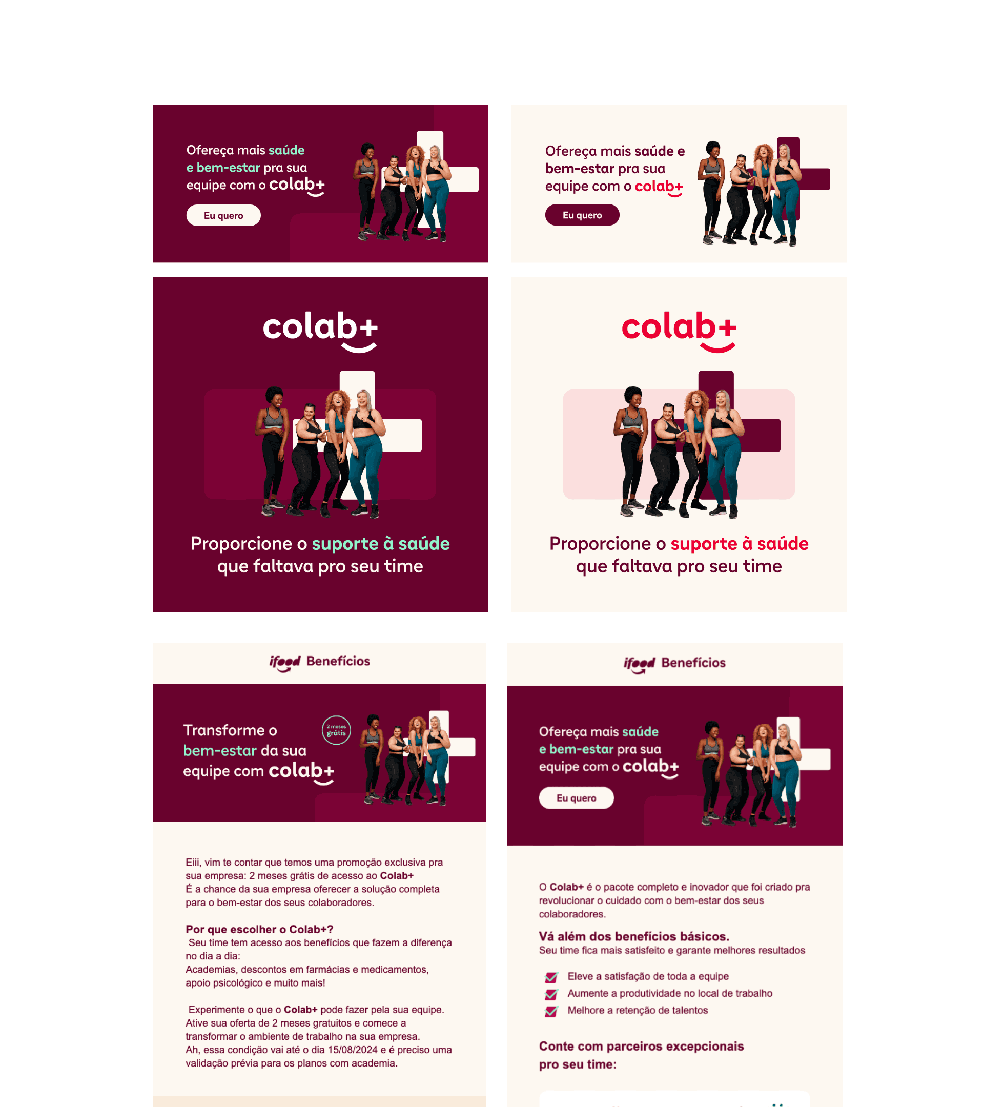 Another relevant project was Colab+, the ecosystem's corporate well-being program. I created a pitch that didn't talk about health, but about impact: using data from The Josh Bersin Company, we showed that companies focused on well-being are 10.8 times more likely to reduce work absences. In the product, I executed the communication strategy, video editing with motion, CRM flows, and the commercial presentation.