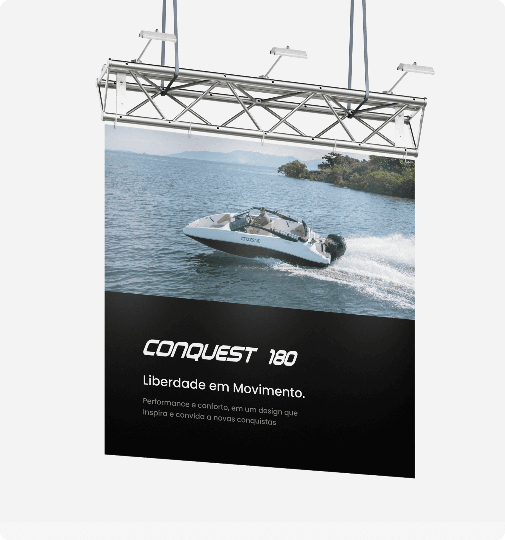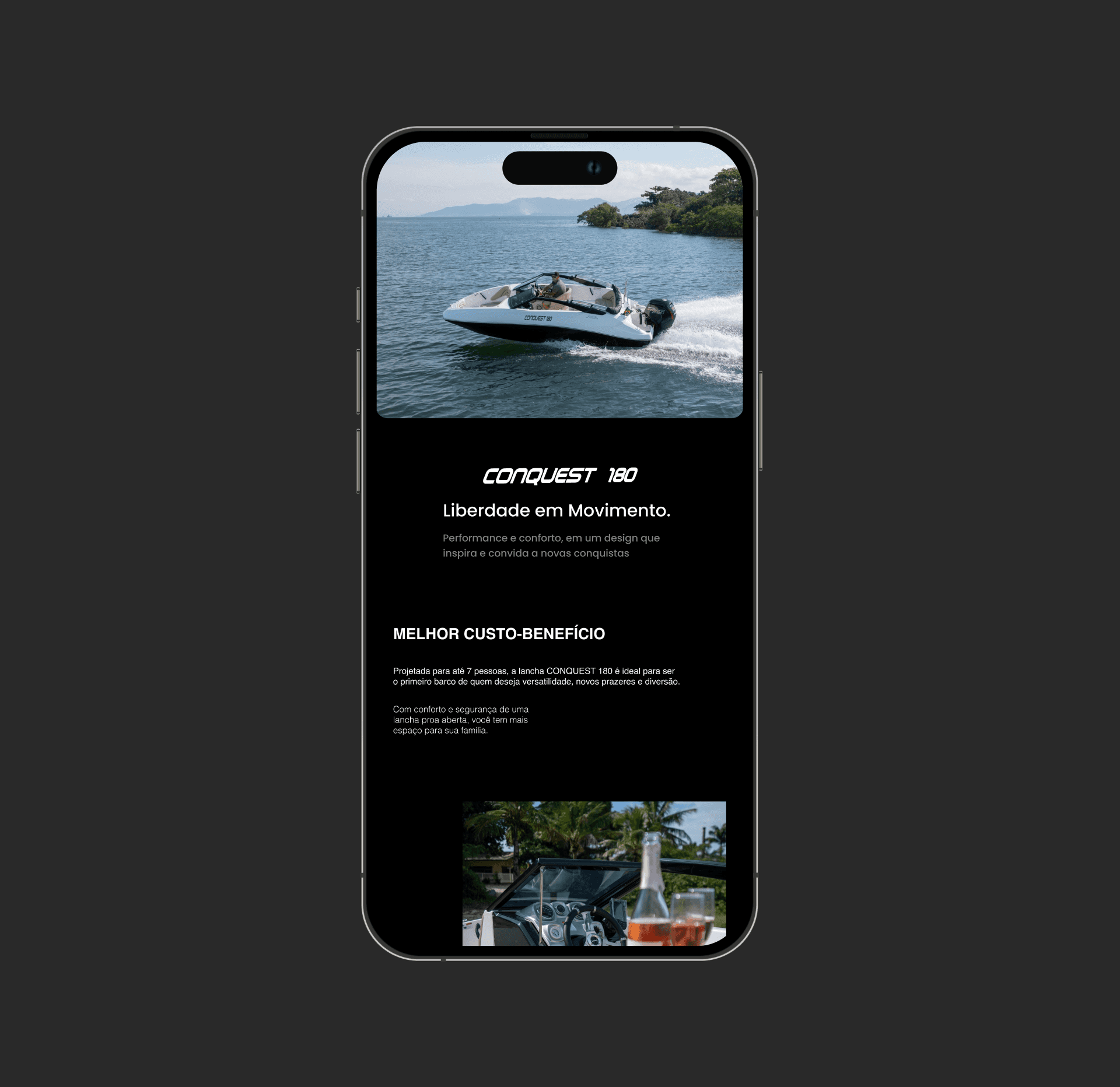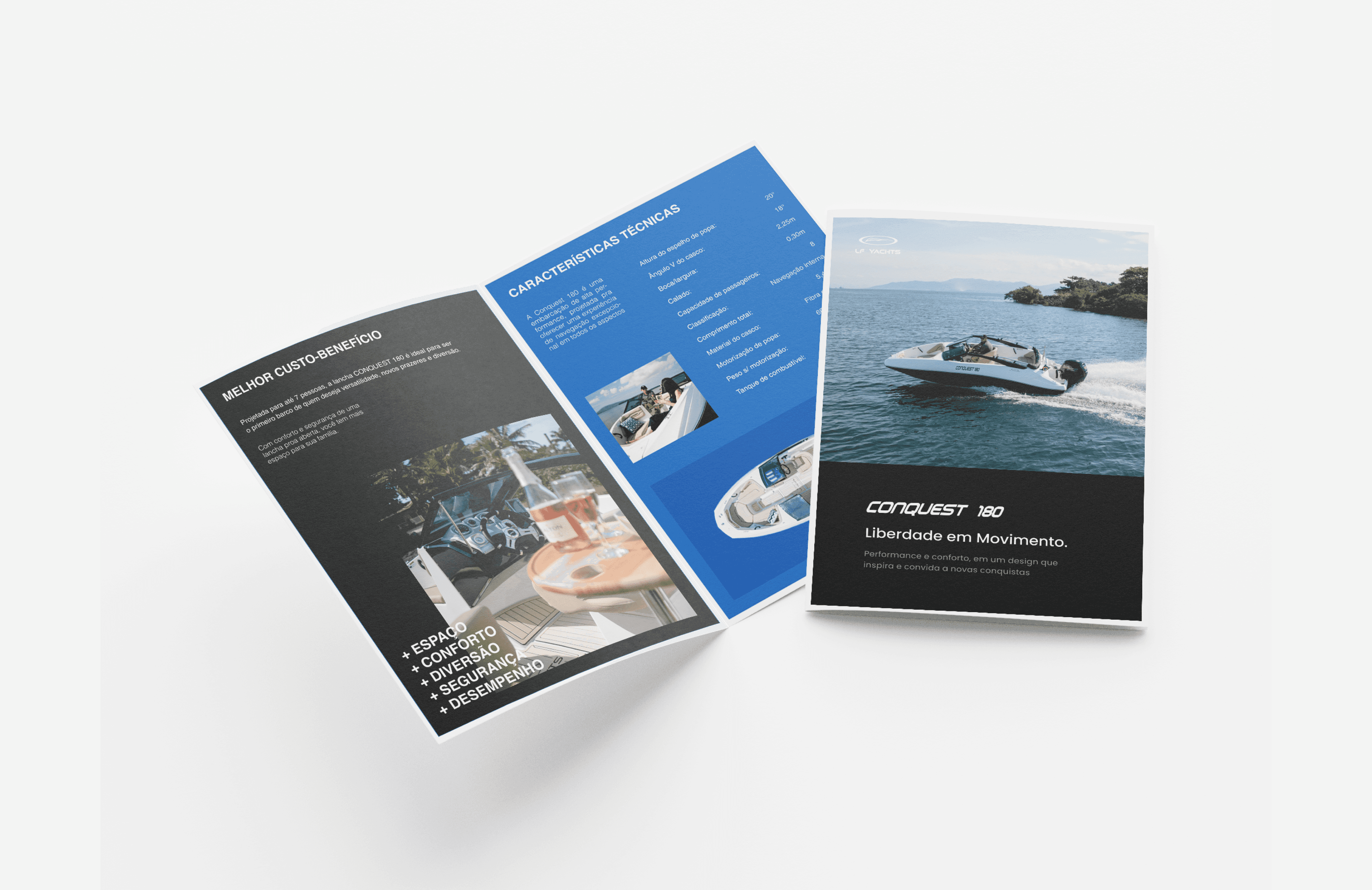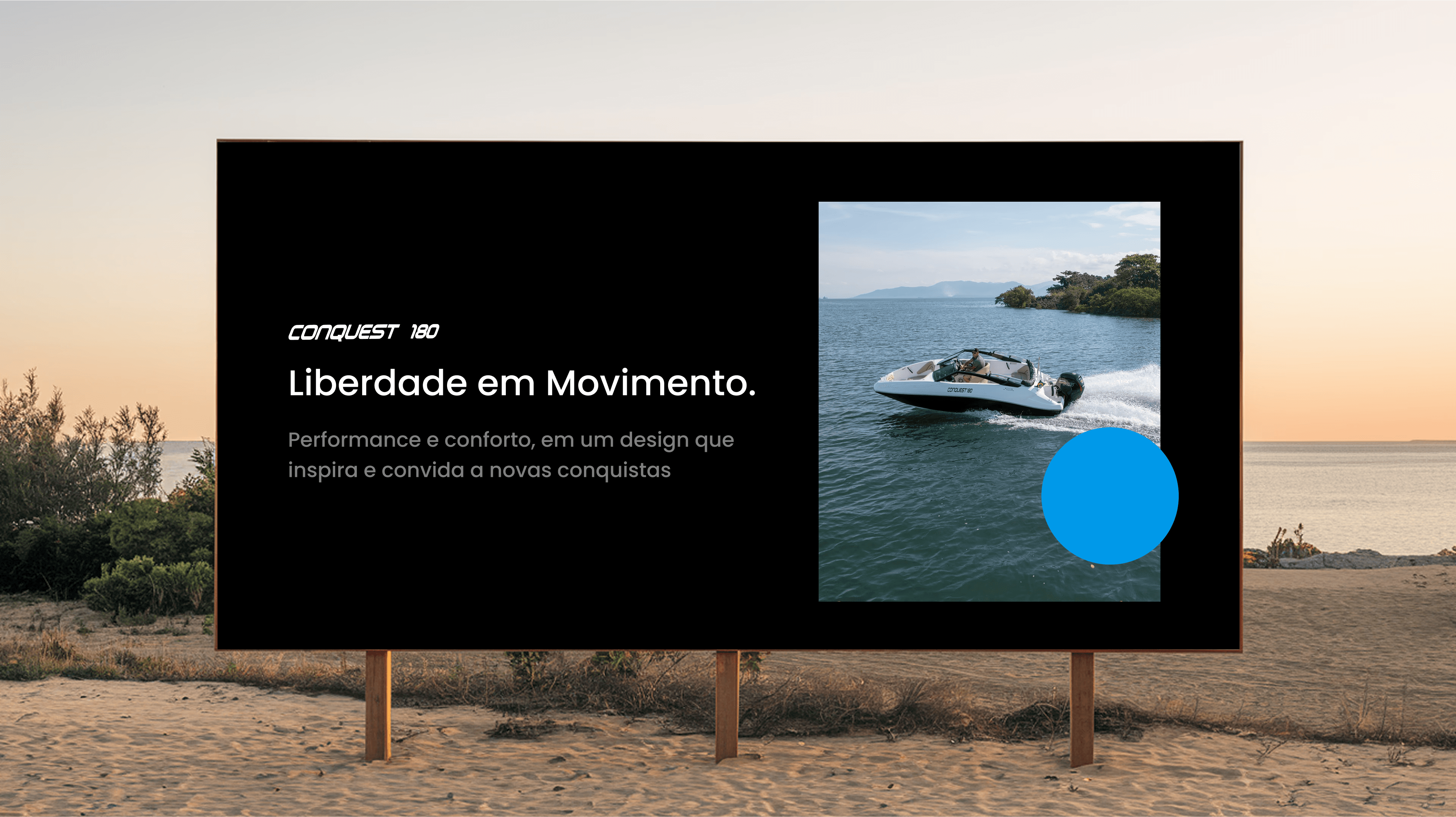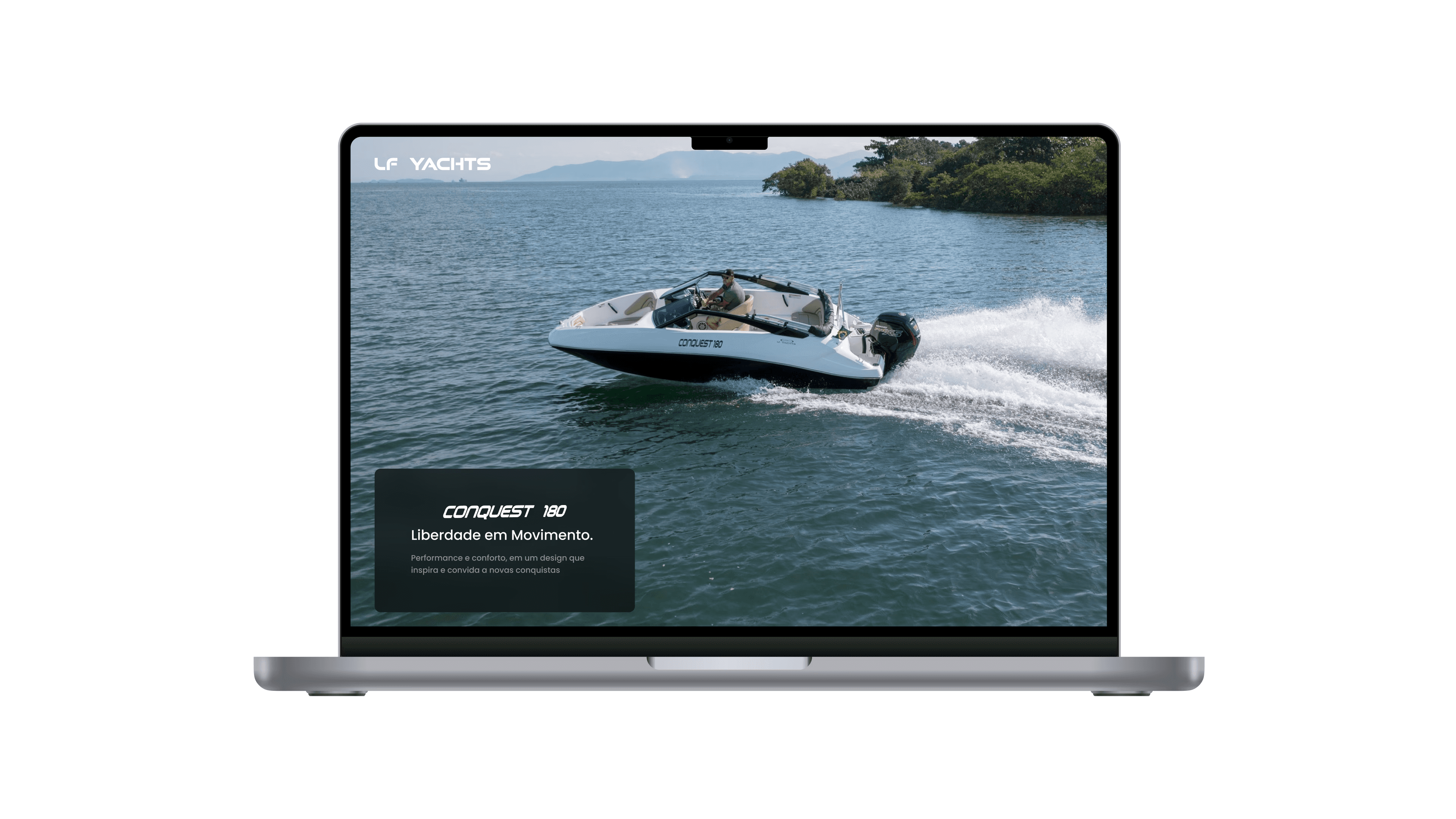 Through aerial videos at sea, high-quality photographs, and persuasive communication materials, we showcased the Conquest 180 and LF Yachts' unwavering commitment to quality and safety. We highlighted every detail of the speedboat, from its luxurious finishes to its elegant interior, conveying the experience of navigating with precision and agility.