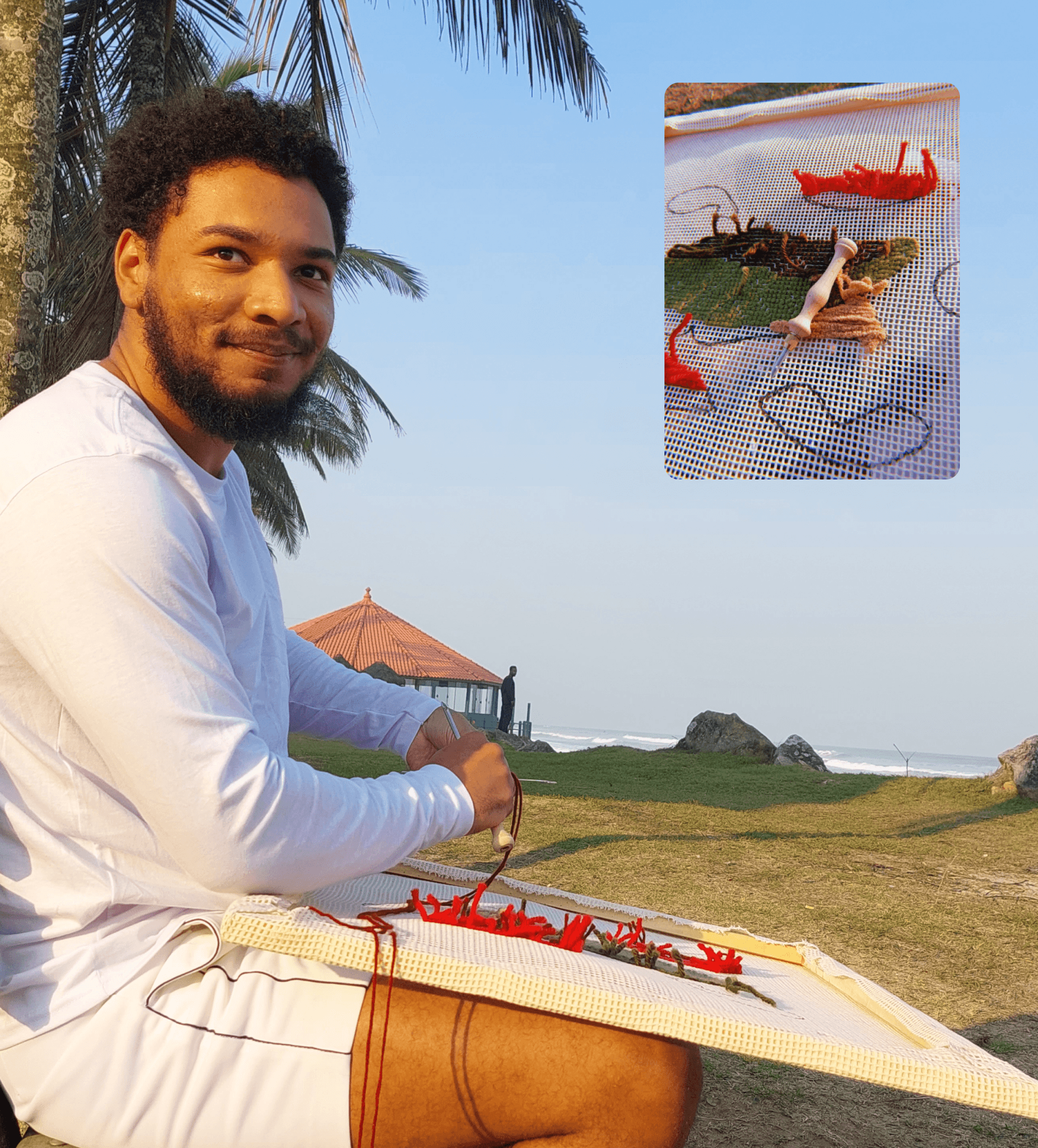 I moved from the city to the beach in 2022, searching for a calmer place where I could listen to myself more. However, the fast pace of work still followed me, leading me to take up embroidery.